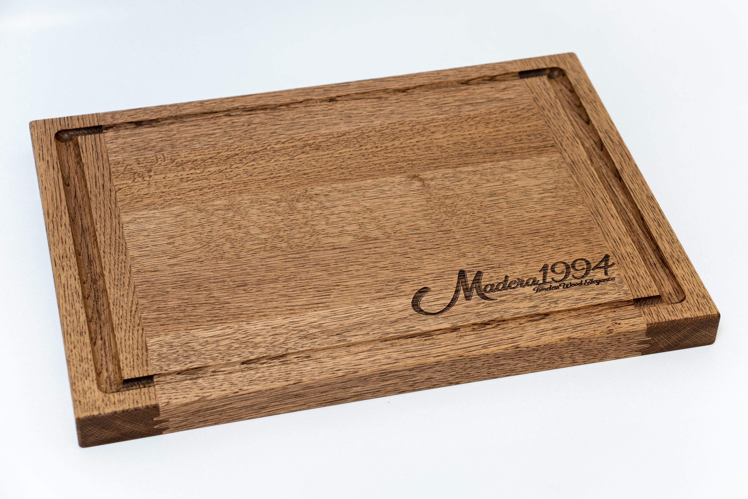 Solidna deska do krojenia z dębu (41 × 29 × 3 cm), olejowana i bezpieczna w kontakcie z żywnością. Idealna do codziennego użytku i serwowania.