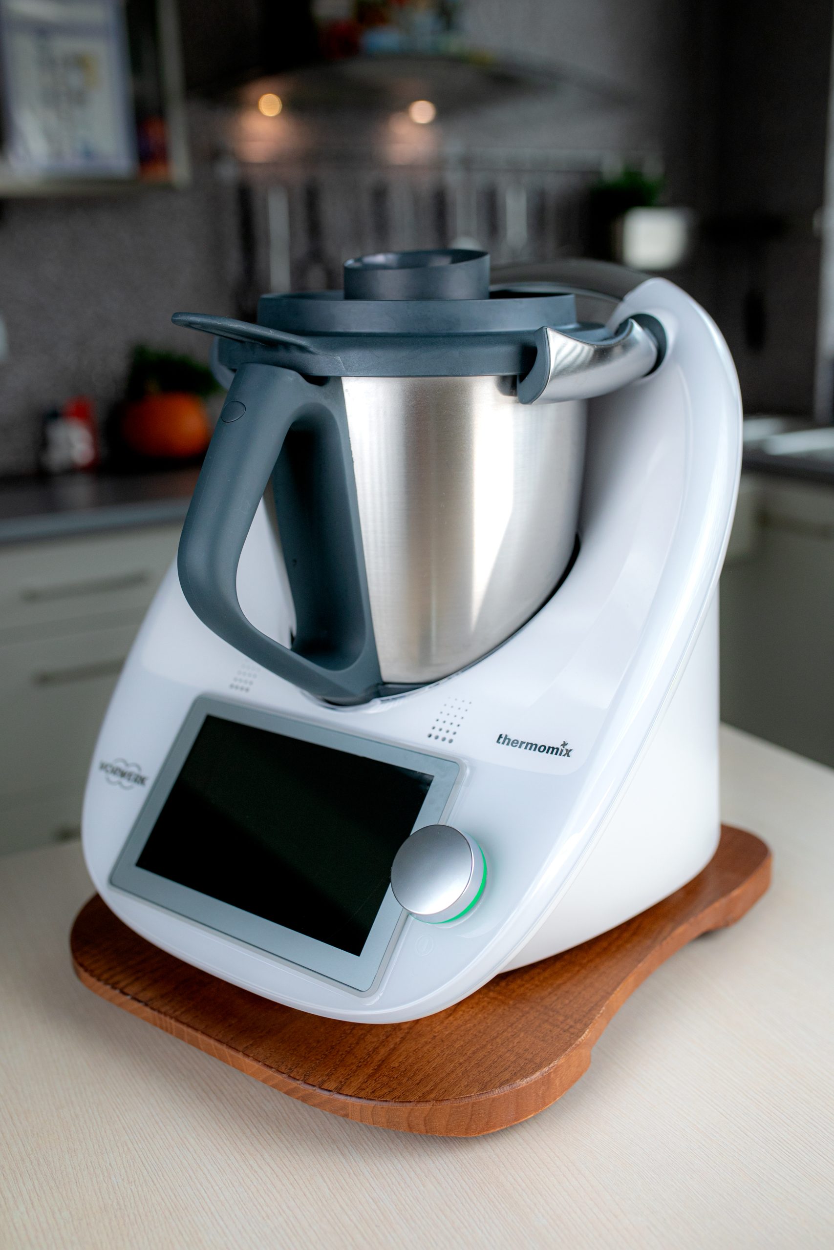 Produkt idealnie pasuje pod thermomix TM5 oraz TM6, wymiary deski to 34cm x 30cm x 3cm. Deska ma bardzo ładny nowoczesny wygląd który podkreślają delikatne wcięcia po bokach.
